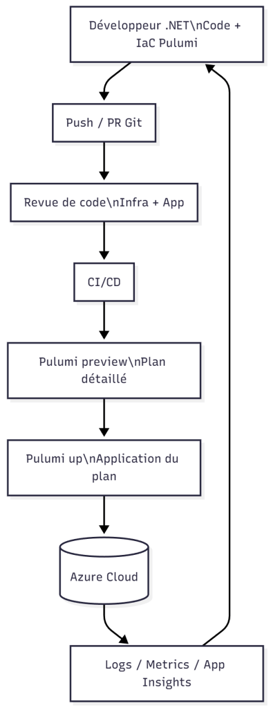 Une stack Pulumi devient alors un composant vivant du projet, raccordé à son cycle de livraison.