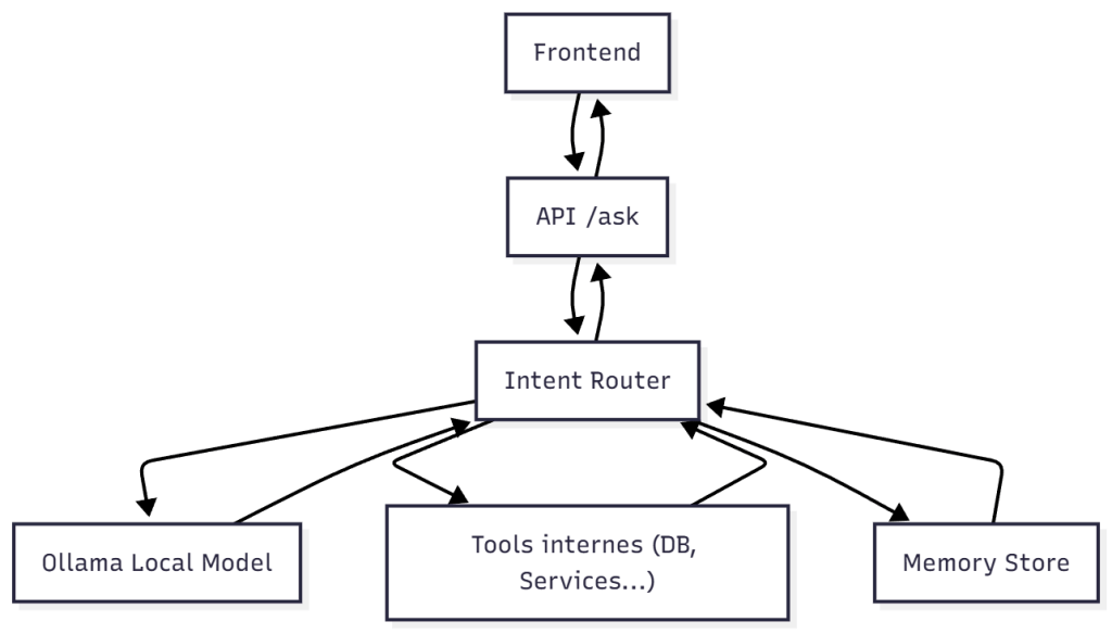 Le client appelle toujours /ask, et c’est le router qui décide de la suite. Le LLM ne reçoit pas une question “brute” mais un message JSON structuré indiquant ce que l’utilisateur veut faire.