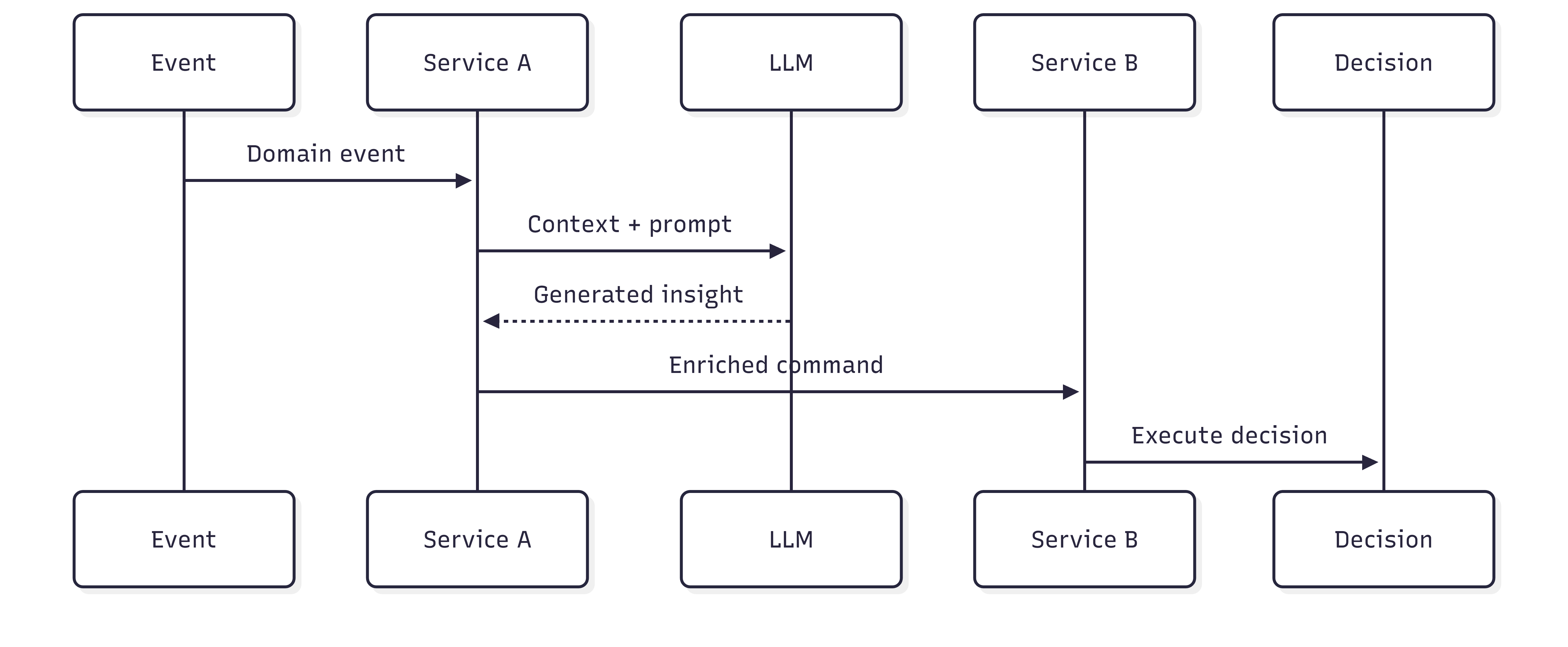 Insérons maintenant un LLM dans la chaîne, avec une intention parfaitement légitime : enrichir le contexte, analyser une situation, améliorer la qualité de la décision.